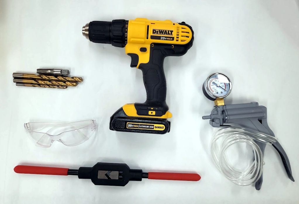 Step 2: Tap the holes with 1/4-18 NPT tap.